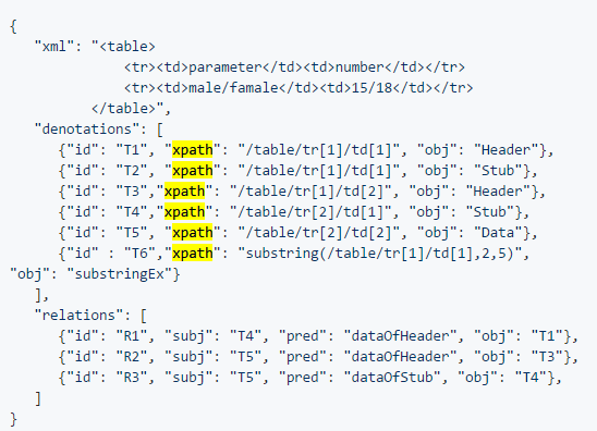 I have decided to design schema extension for PubAnnotations that will allow annotation of XML documents and the structure inside the documents, including tables. The main issue with annotating documents in XML is storing the location of the annotation. No more can be used string span and how many characters away from the beginning is the annotated word or phrase. So I searched for the technology that will allow me locate annotations in the structure of XML. I found technology called XPath that is able to locate path to the given XML element. Also XPath supports substrings inside the located element, which was perfect way to show annotation tool where the annotation is located. The types of annotations I kept from PubAnnotations with denotations, relations and modifications and format remained the same (json). I run couple of discussion sessions, especially with Jin-Dong Kim, who is the director of DBCLS and the main developer behind PubAnnotations. We mainly agreed that it was a good idea and Jin-Dong had even thoughts about including it at some point in PubAnnotations. However, at this hackathon I had no time to make an annotation tool. Since short time was left, I developed couple of conversions tools for different annotations formats to PubAnnotation format, such as MetaMap2PubAnnotation (for conversion of UMLS annotations generated by MetaMap into PubAnnotation)and GATE2PubAnnotations (for conversion of annotations created by GATE into PubAnnotations).